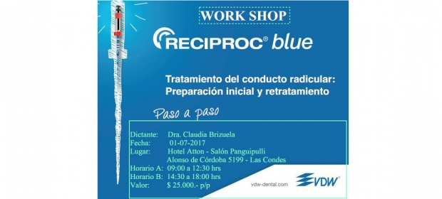 Expro Dental y VDW los invita a participar del Work Shop Reciproc BLUE el proximo Sabado 1 de Julio, la Dra Claudia Brizuela, en esta oportunidad compartirá con nosotros su experiencia profesional con la lima que ha causado impacto en la Endodoncia Mundial.