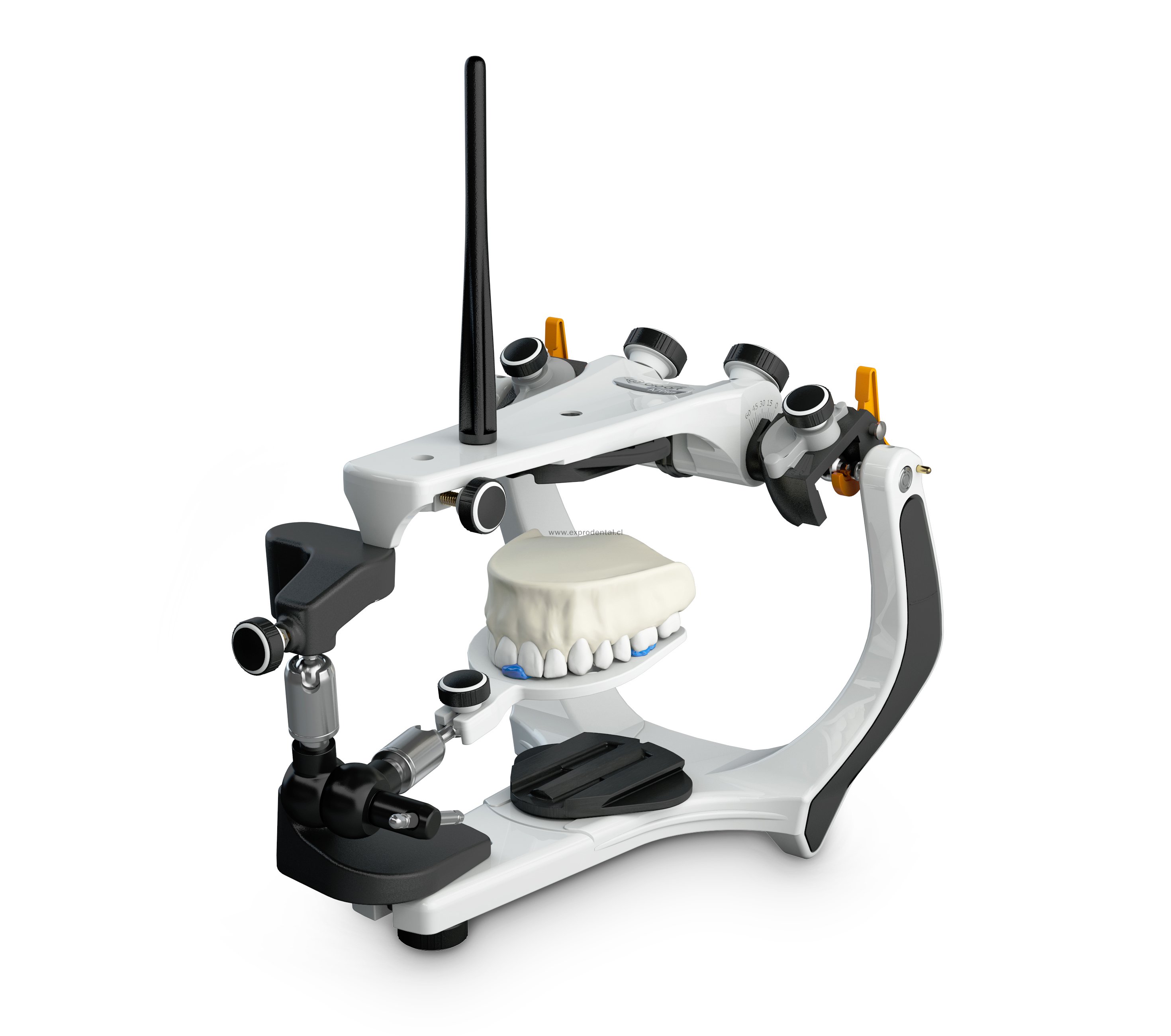 Estructura robusta hecha en aluminio, garantizando mayor estabilidad. Con un diseño que proporciona una mejor visibilidad de las posiciones maxilo-mandibulares estáticas y dinámicas.