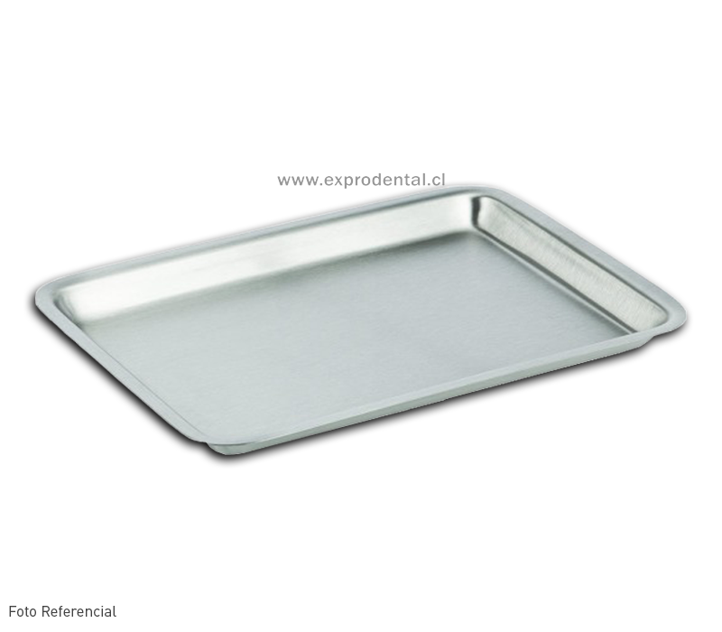 Bandeja de acero inoxidable utilizada para depositar instrumental clínico antes o después de utilizarlos. Apto para uso hospitalario, médico o quirurgico.